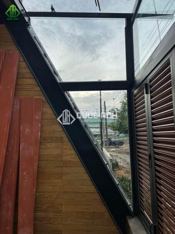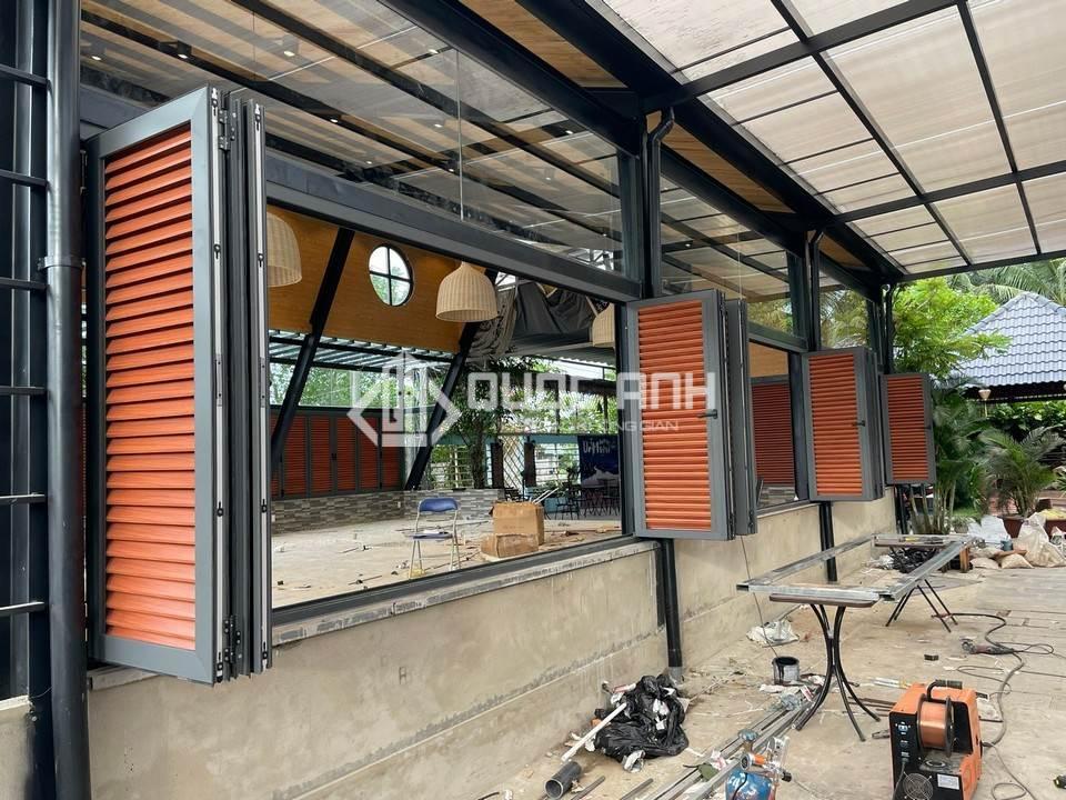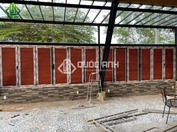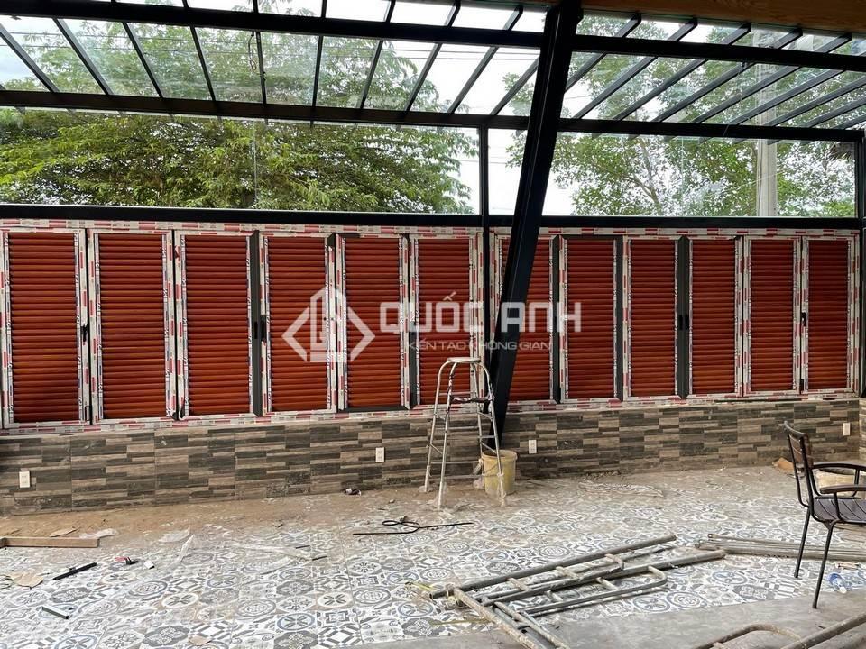 Hạng mục: Mái kính cường lực – Vách lam nhôm – Cửa xếp trượt