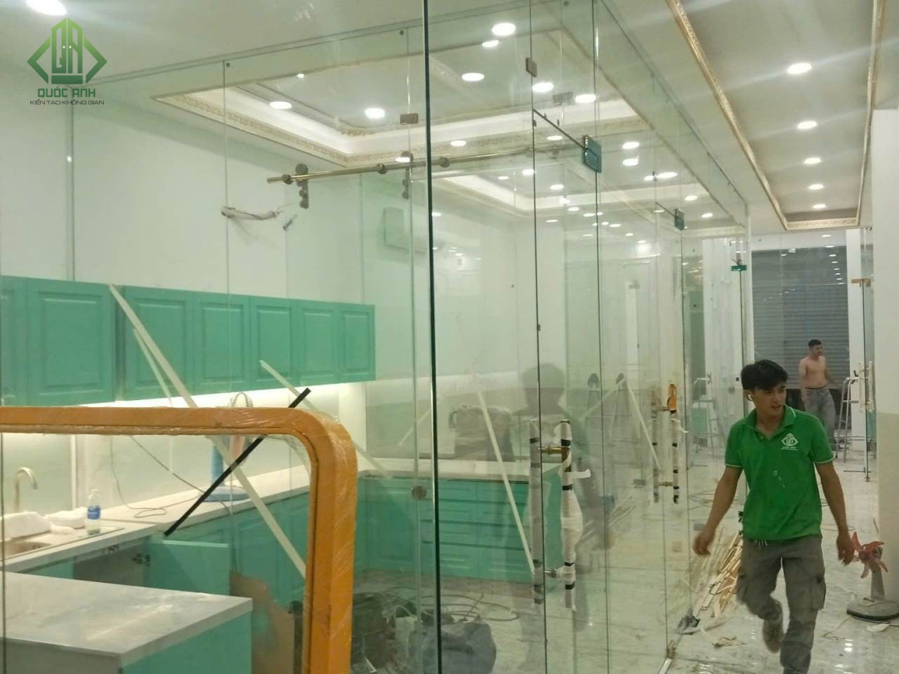 Vách ngăn kính cường lực giúp phân chia không gian một cách tinh tế và hiệu quả, đồng thời tạo cảm giác thoáng đãng và rộng rãi cho căn phòng.