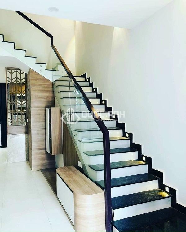 - Bậc cầu thang: có thể sử dụng các chất liệu khác nhau như gỗ, bê tông, kính tùy thẩm mỹ của gia chủ. Lưu ý nên chọn chất liệu có khả năng chịu lực tốt, chống trơn trượt khi di chuyển.