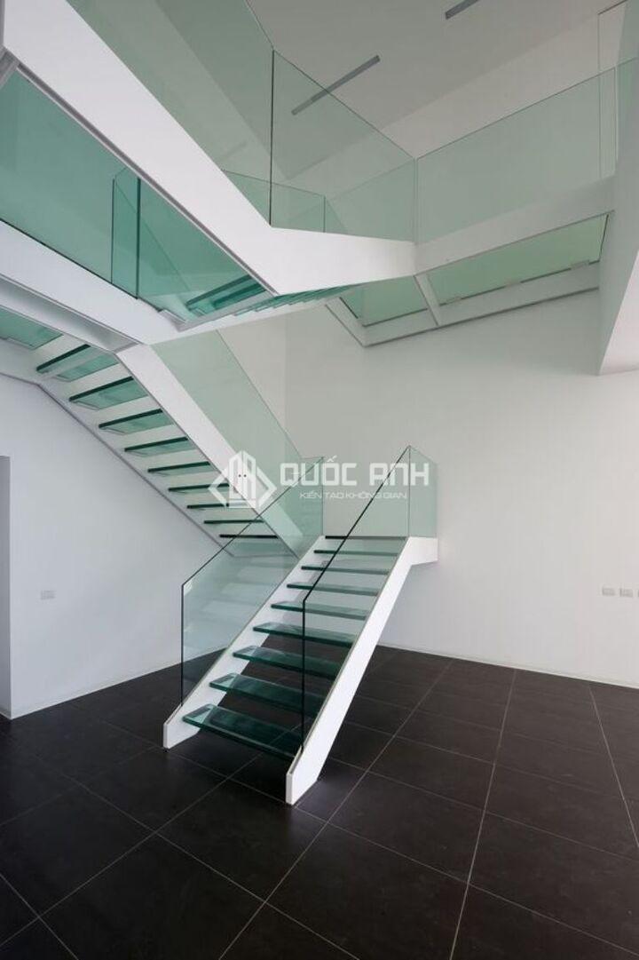 - Cầu thang kính cường lực không tay vịn tinh tế.