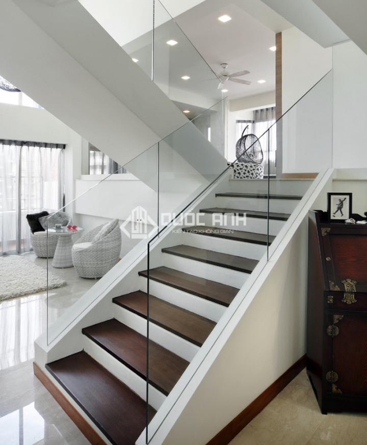 - Cầu thang được làm từ chất liệu là kính cường lực có khả năng chịu lực va đập tốt.