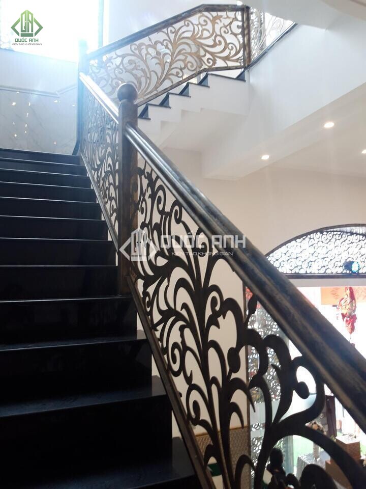 - Mẫu lan can cầu thang sắt CNC theo phong cách cổ điển góp phần làm tăng vẻ đẹp huyền bí cho không gian.