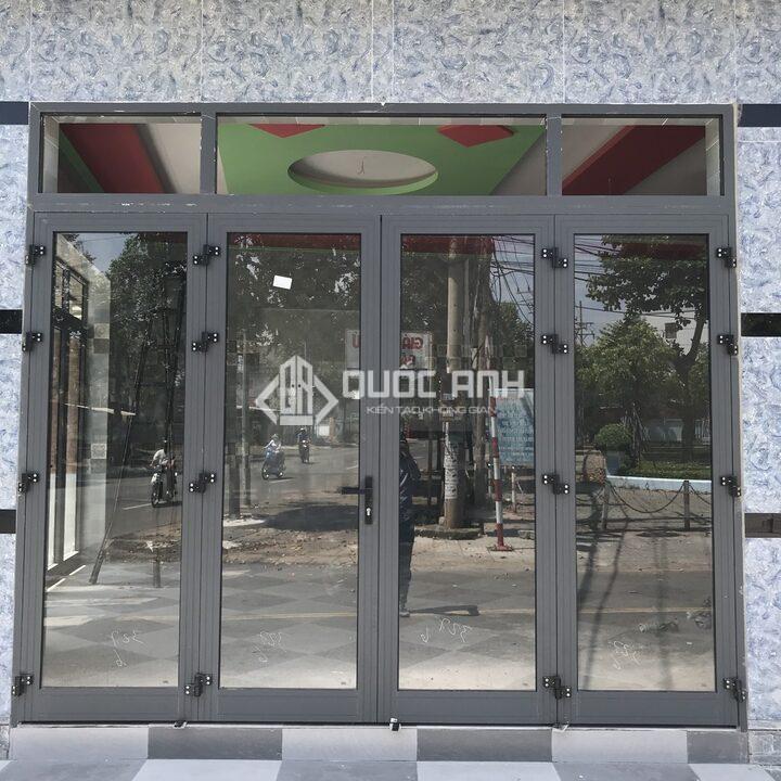 - Cửa kính cường lực khung nhôm hệ cửa sổ.