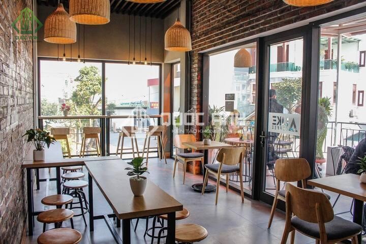- Một số lưu ý khác: Đối với quán cafe có không gian nhỏ thì nên lắp đặt cửa trượt lùa để tối ưu diện tích. Để quán cafe có thêm điểm nhấn, bạn hãy nghiên cứu dán thêm decal trang trí, treo vòng hoa, trồng cây xanh,…