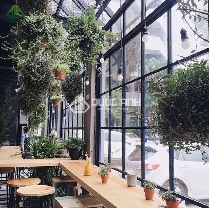 - Cửa kính quán cafe giúp lấy sáng hiệu quả.