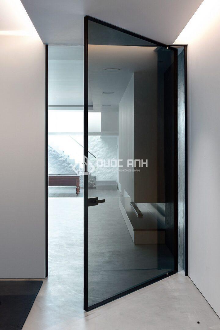 - Cửa ngăn phòng lắp kèm vách ngăn kính: thông dụng nhất là cửa 1 cánh bản lề sàn (cửa thủy lực 1 cánh) hoặc cửa kính trượt lùa.