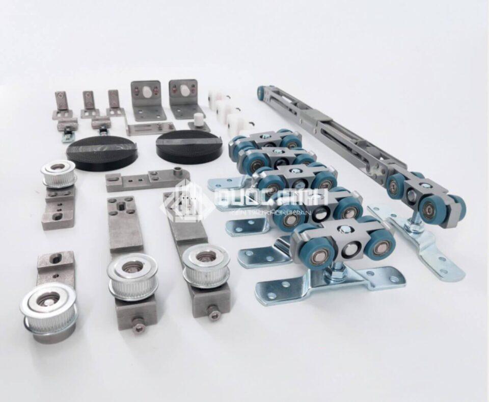 - Cửa có thể tích hợp thêm mô tơ kéo cửa tự động. Tùy vào kích thước của cửa sẽ sử dụng các loại bánh xe có tải trọng khác nhau.