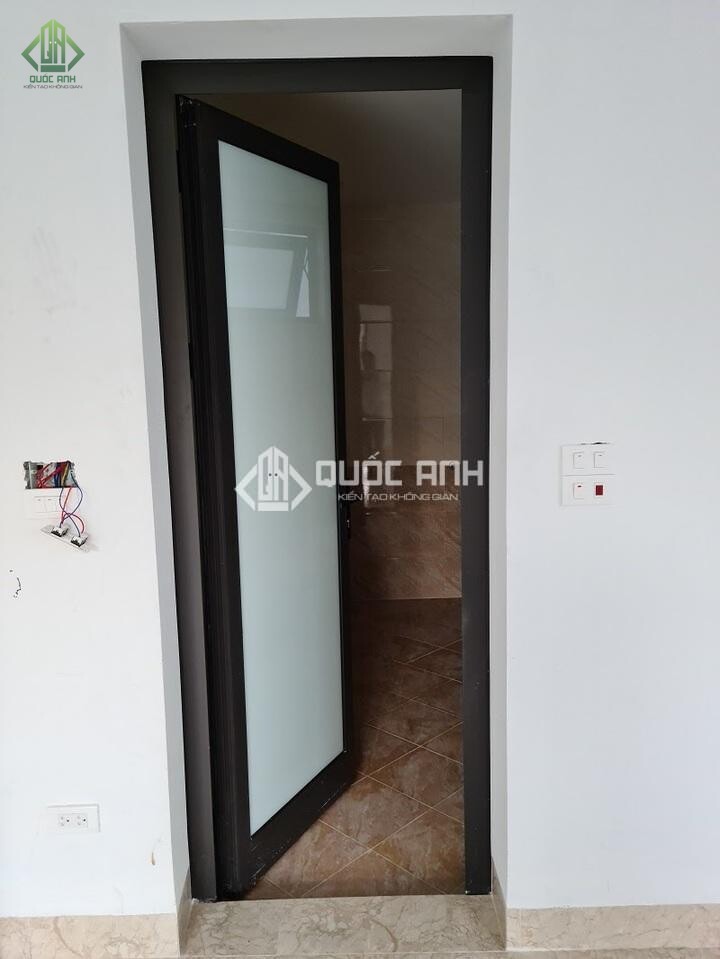 - Cửa nhôm toilet thiết kế kiểu cửa khép buồng kín mở quay hoặc cửa lùa nhà vệ sinh.