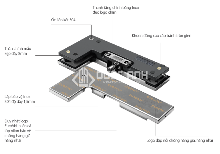 - Bộ kẹp L: kẹp trên, dưới, kẹp ti, thân trong đều có khắc logo nổi.