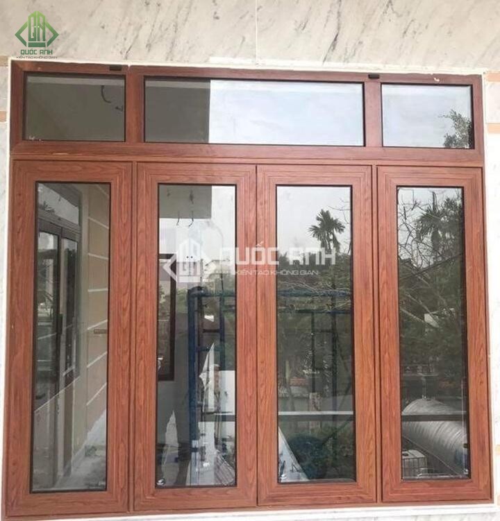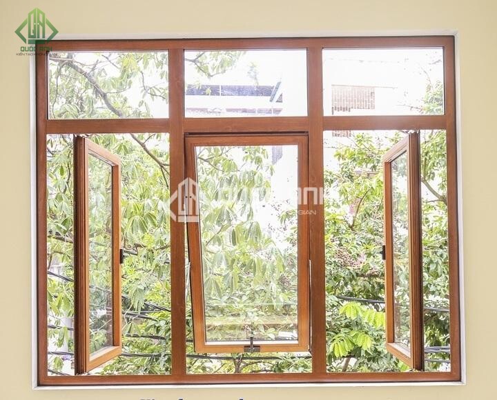 - Cửa sổ kính khung nhôm vân gỗ.