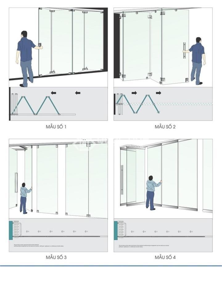 Cửa xếp kính cường lực thường có số cánh chẵn: 4, 6 hoặc 8 cánh tùy thuộc vào diện tích nơi lắp đặt.