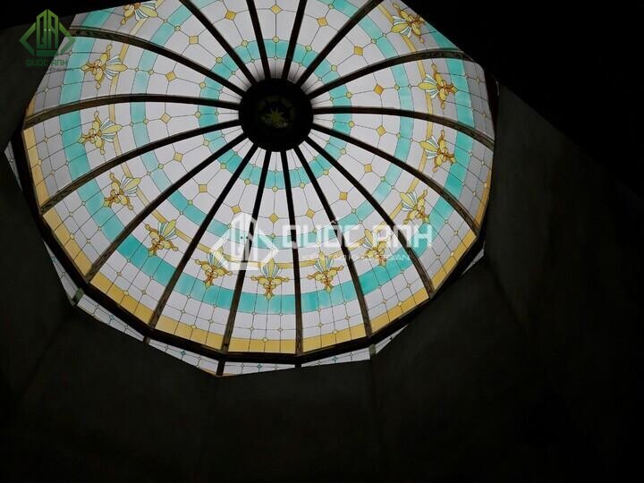 Kính hoa văn đồng thường được dùng để làm cửa đi, vách kính, mái vòm.