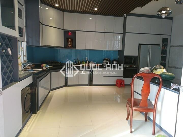 - Kính màu ốp bếp: dùng kính màu ốp bếp sẽ giúp không gian bếp vừa đẹp mắt, lại luôn sạch sẽ, sáng bóng.