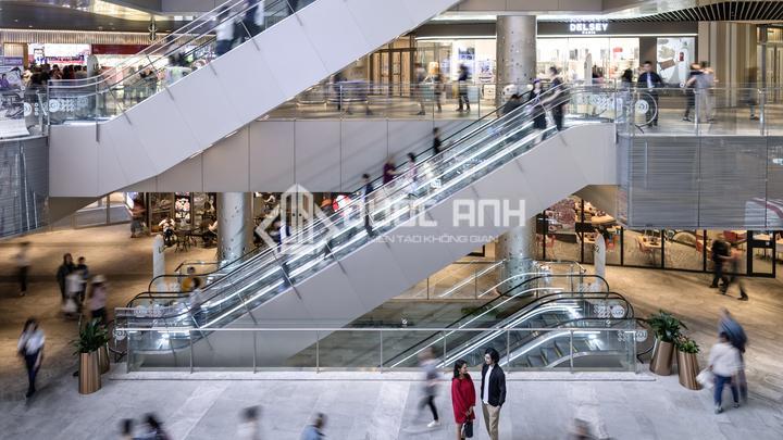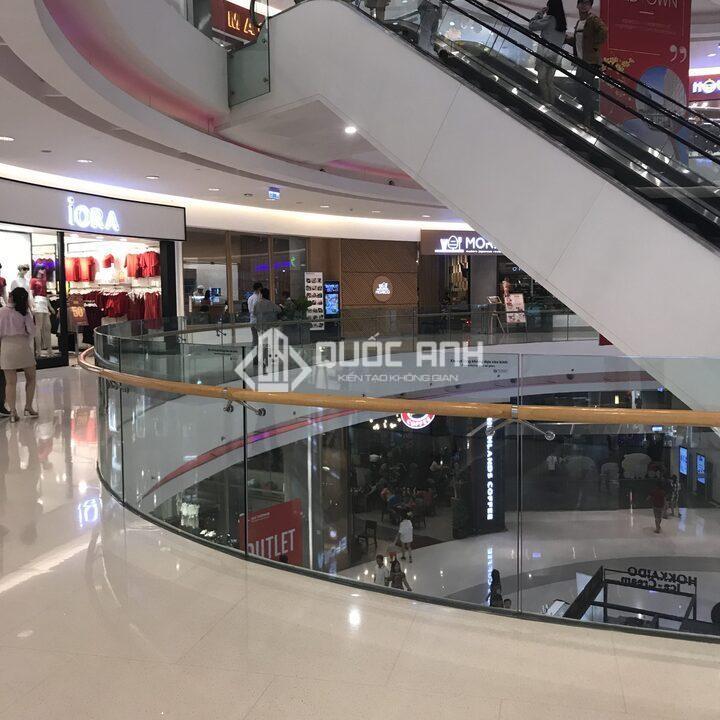- Lan can kính trung tâm thương mại sở hữu vẻ đẹp sang trọng, đẳng cấp.