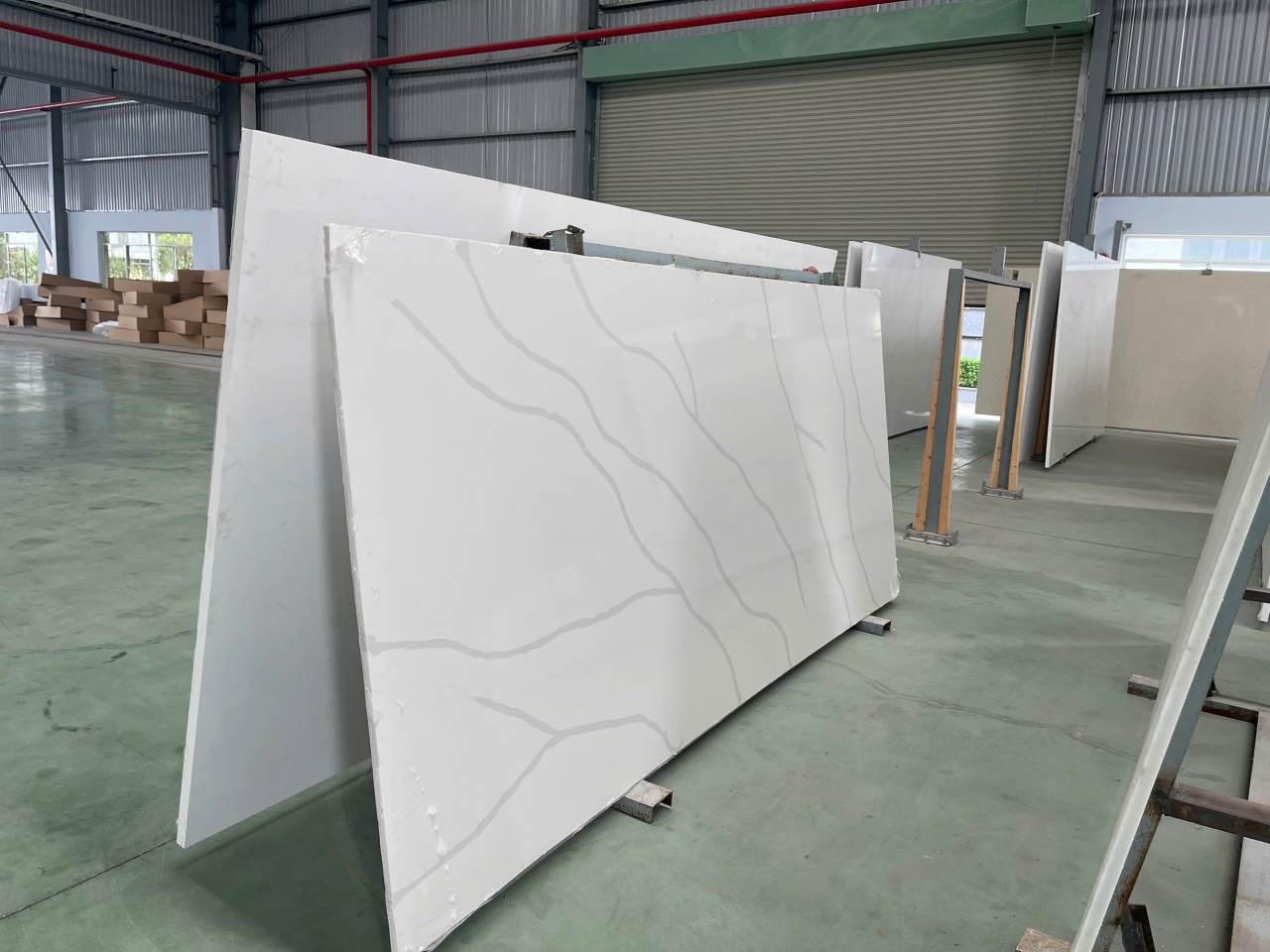 Mẫu đá thạch anh vân trắng ốp bàn bếp