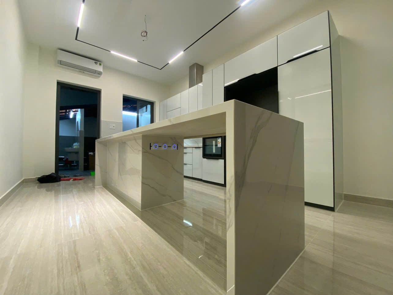 - Chuyên nghiệp trọn gói: Từ lên ý tưởng thiết kế, chọn vật liệu, đến thi công đồng bộ tủ bếp kết hợp mặt đá bếp hiện đại.