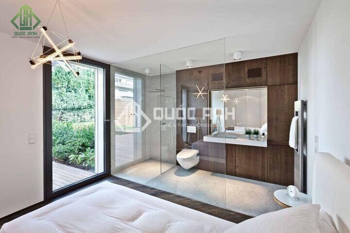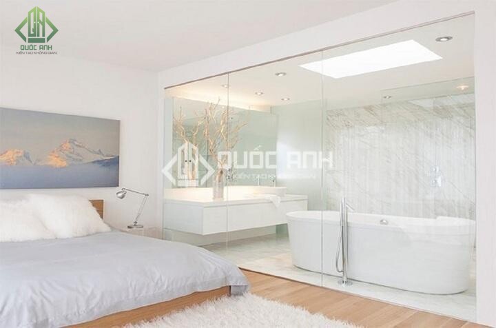- Lắp đặt phòng tắm kính trong phòng ngủ giúp tận dụng không gian tốt, mang lại tính thẩm mỹ cao.