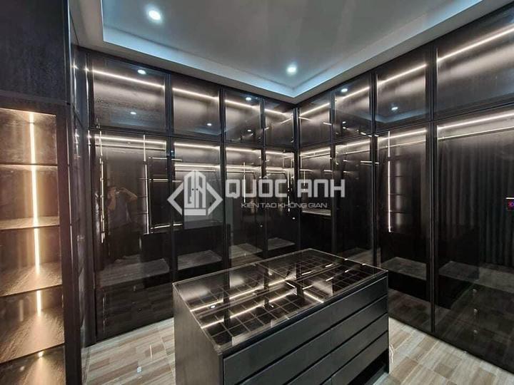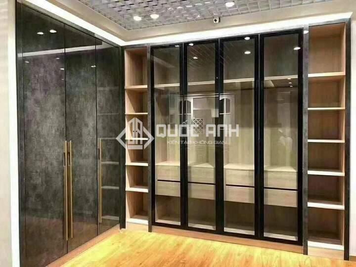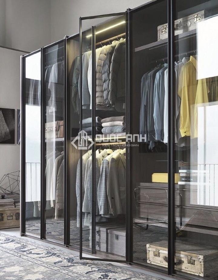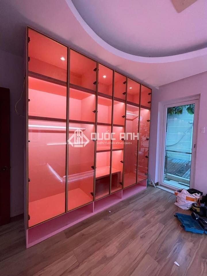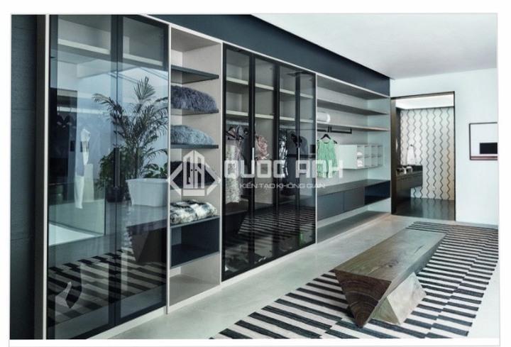 - Phòng thay đồ: với những gia đình xây riêng một phòng thay đồ thì nên lắp tủ áo cánh kính, việc này sẽ giúp việc sắp xếp quần áo trở nên đẹp mắt và khoa học hơn. Ngoài ra, nếu sử dụng cánh kính thì bạn cũng có thể dễ dàng thấy được đâu là khu vực để áo, quần, váy… tạo sự tiện lợi tối đa cho người dùng.