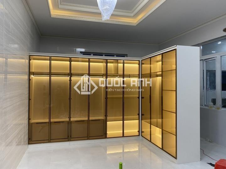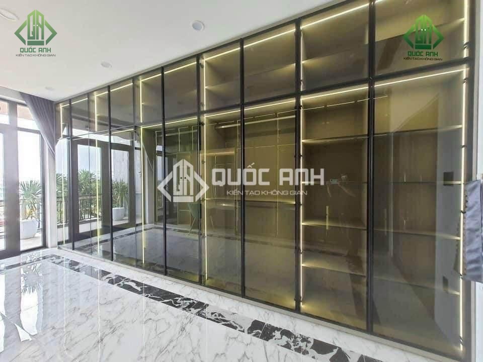 Với đặc điểm đó của thanh nhôm khi kết hợp với kính tạo nên tổng thể hài hòa, sang trọng, nếu lắp thêm hệ thống đèn vàng âm trong tủ sẽ càng tạo điểm nhấn giúp căn phòng càng thêm ấn tượng, thu hút.