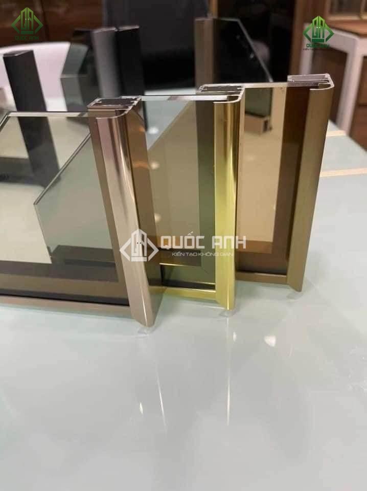 - Khung cánh kính: khung nhôm sơn tĩnh điện cao cấp hoặc khung inox. Trong đó khung nhôm có nhiều sự lựa chọn về màu nên vẫn được khách yêu thích hơn inox, ví dụ như: màu vàng đồng, đen,…