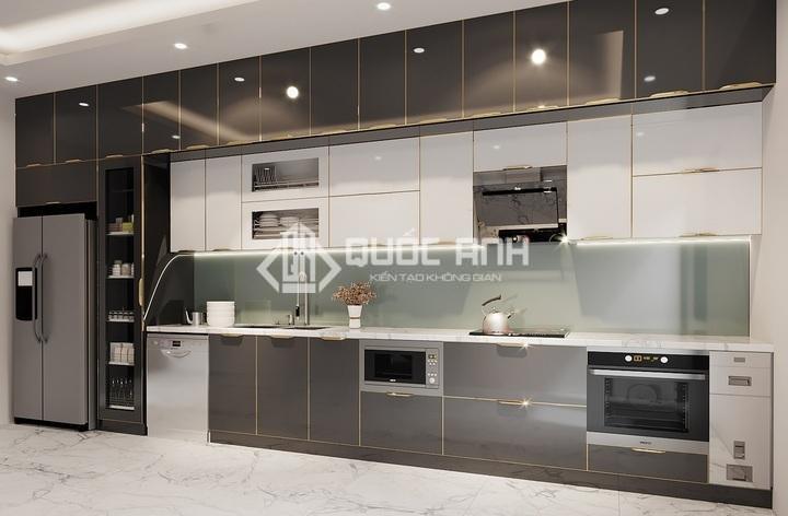 - Tủ bếp cánh kính cao cấp có vẻ ngoài cực kỳ sang trọng, đẳng cấp.