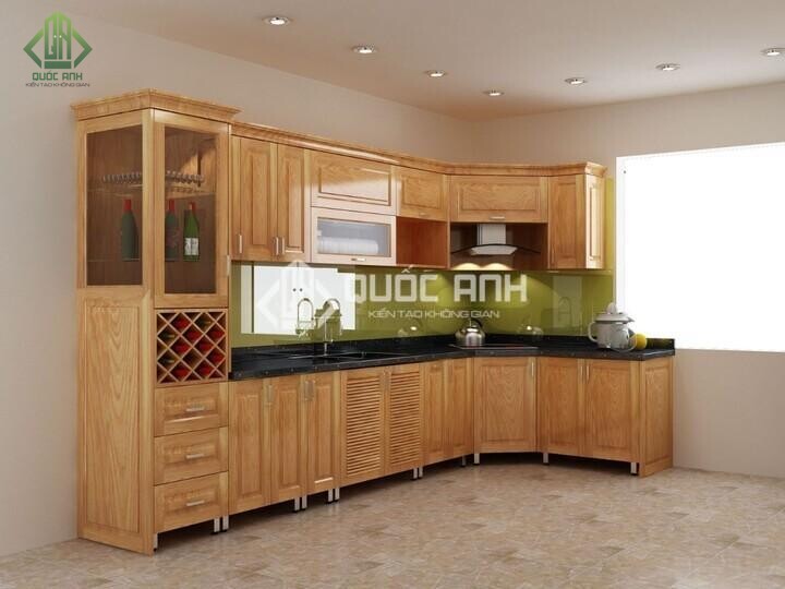 4.3 Tủ bếp góc bát giác làm từ gỗ (gỗ tự nhiên, gỗ công nghiệp)