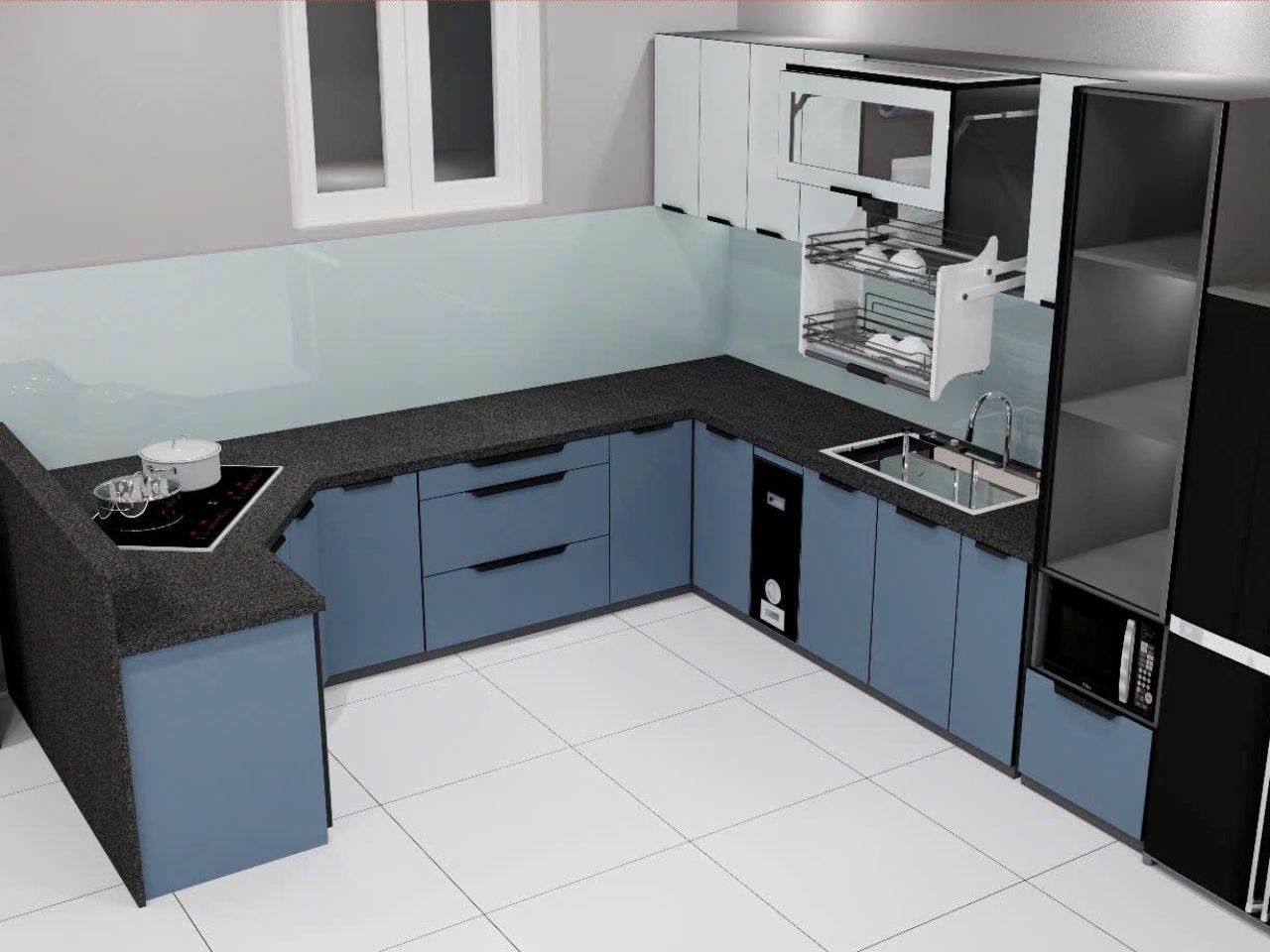Thiết kế tủ bếp góc bát giác bố cục chữ U