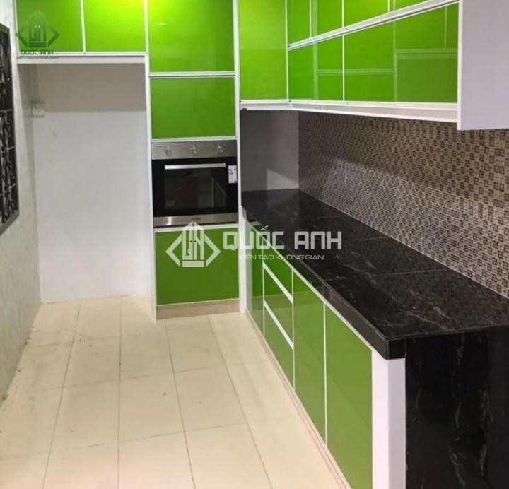 - Tủ bếp nhôm kính sơn tĩnh điện có độ bền màu cao.