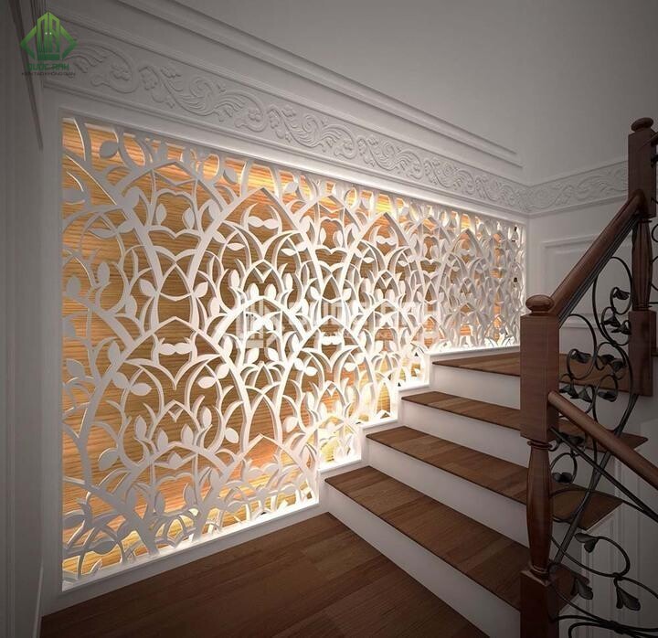 - Vách ngăn CNC đặt vị trí cầu thang.